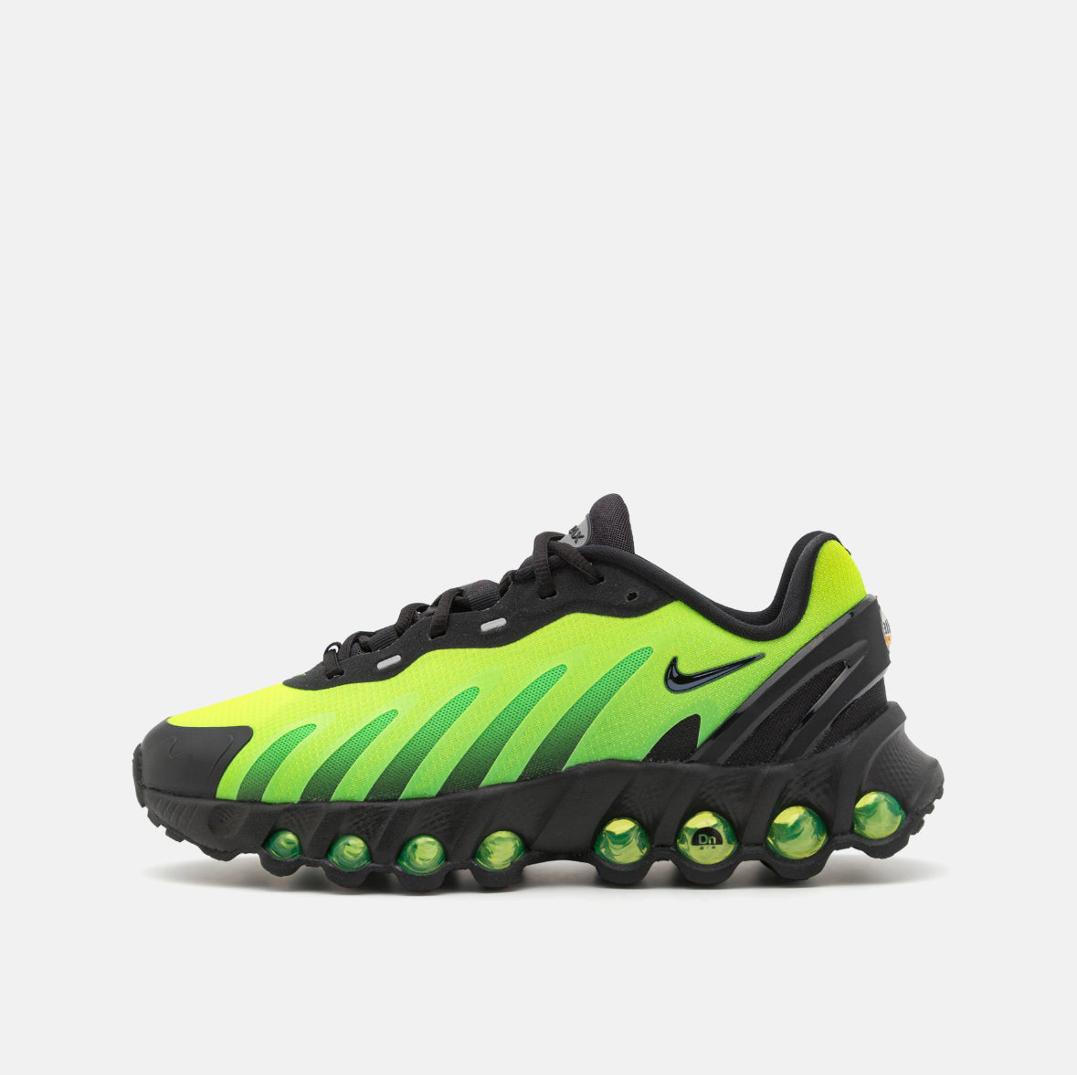Plus d'Air, moins de volume. La Dn8 reprend notre système Dynamic Air et l'intègre dans une chaussure basse et épurée. Avec ses huit cylindres Air pressurisés, elle offre une sensation de réactivité à chaque pas. Vivez une expérience de mouvement incroyable